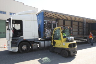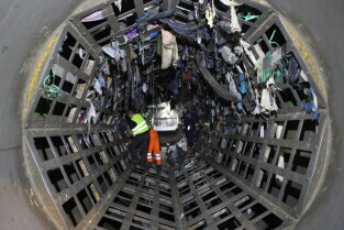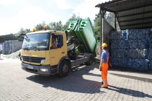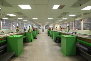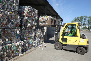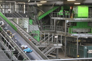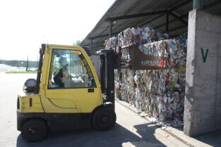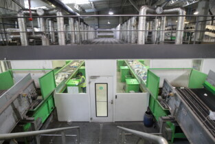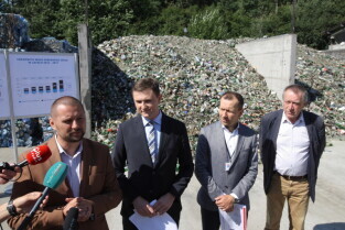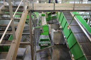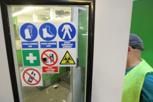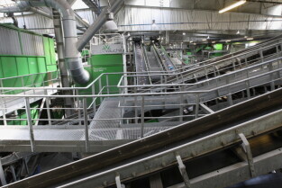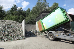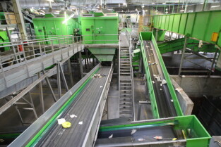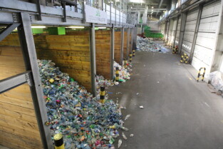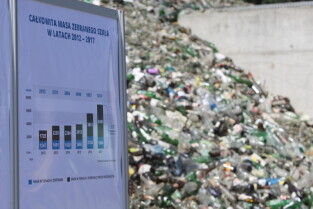 Gdańsk. Konferencja dotycząca segregacji szkła. Zastępca Prezydenta Gdańska, Piotr Grzelak podsumował efekty roku (od 1 lipca 2016 r.) obowiązkowej segregacji szkła. Nz. Sortownia odpadów.