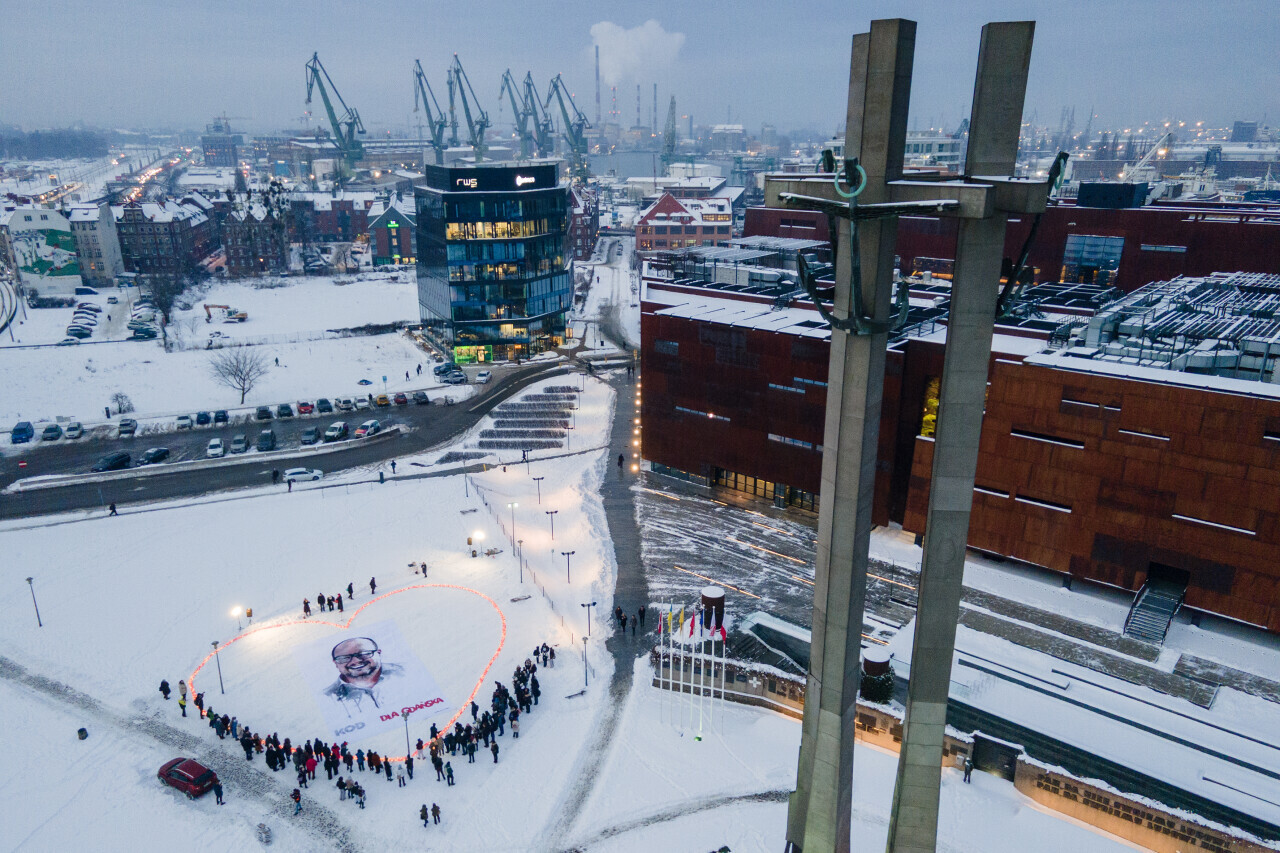Gdańsk. W 7 rocznicę śmierci zamordowanego prezydenta miasta Pawła Adamowicza, na Placu Solidarności członkowie gdańskiego oddziału KOD i uczniowie Uniwersyteckiego Liceum Ogólnokształcącego ułożyli wielkie serce z setek zniczy. W akcji wzięli także udział Magdalena Adamowicz, żona zamordowanego prezydenta i jego brat Piotr Adamowicz. Byli tam też radny Marcin Makowski i były radny Andrzej Stelmasiewicz