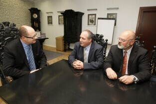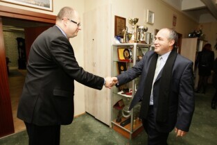 Prezydent Gdańska Paweł Adamowicz spotkał się z nowym Prezesem Saur Neptun Gdańsk Sergem Bosca. Gdańsk, Urząd Miejski