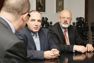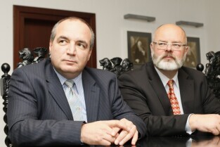 Prezydent Gdańska Paweł Adamowicz spotkał się z nowym Prezesem Saur Neptun Gdańsk Sergem Bosca. Gdańsk, Urząd Miejski. Nz. po prawej odchodzący ze stanowiska Prezesa SNG Zbigniew Maksymiuk