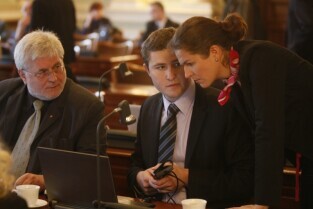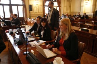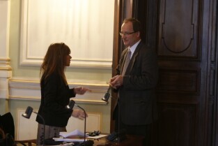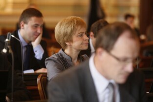 Październikowa sesja Rady Miasta Gdańska w Nowym Ratuszu. Nz. od prawej radni: Aleksandra Dulkiewicz, Piotr Grzelak, Marek Bumblis