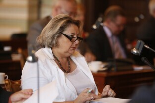 Październikowa sesja Rady Miasta Gdańska w Nowym Ratuszu. Nz. radna Halina Leman