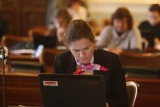 Październikowa sesja Rady Miasta Gdańska w Nowym Ratuszu. Nz. radna Aleksandra Dulkiewicz