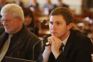 Październikowa sesja Rady Miasta Gdańska w Nowym Ratuszu. Nz. radny Piotr Skiba