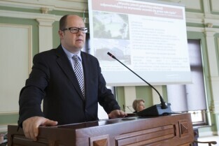 Gdańsk, Nowy Ratusz. Wrześniowa sesja Rady Miasta Gdańska. Nz. radny Wiesław Kamiński