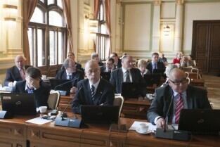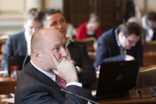 Gdańsk, Nowy Ratusz. Wrześniowa sesja Rady Miasta Gdańska. Nz. radny Jaromir Falandysz