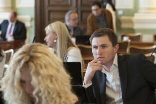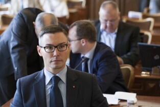 Gdańsk, Nowy Ratusz. Wrześniowa sesja Rady Miasta Gdańska. Nz. radny Maciej Krupa
