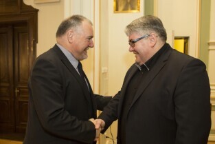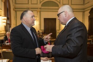 Gdańsk, Nowy Ratusz. Sesja Rady Miasta Gdańska. Nz. Radny Grzegorz Strzelczyk i Prezydent Gdańska Paweł Adamowicz