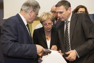 Gdańsk, Nowy Ratusz. Sesja Rady Miasta Gdańska. Nz. od lewej: Przewodniczący Rady Miasta Gdańska Bogdan Oleszek, Sekretarz Miasta Gdańska Danuta Janczarek i Biura Rady Miasta Gdańska Piotr Spyra