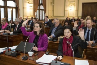 Gdańsk, Nowy Ratusz. Sesja Rady Miasta Gdańska. Nz.