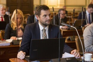 Gdańsk, Nowy Ratusz. Sesja Rady Miasta Gdańska. Nz. Radny Łukasz Hamadyk