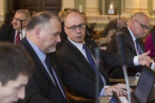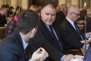 Gdańsk, Nowy Ratusz. Sesja Rady Miasta Gdańska. Nz. Radny Piotr Walentynowicz