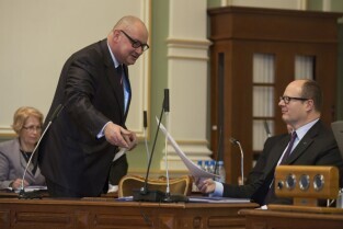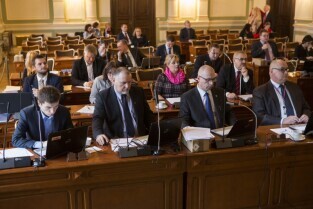 Gdańsk, Nowy Ratusz. Sesja Rady Miasta Gdańska. Nz. po lewej Radny Piotr Dzik