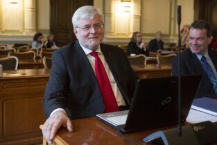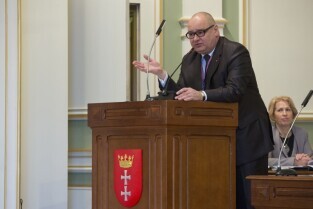 Gdańsk, Nowy Ratusz. Sesja Rady Miasta Gdańska. Nz. Prezydent Gdańska Paweł Adamowicz
