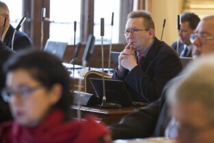 Gdańsk, Nowy Ratusz. Sesja Rady Miasta Gdańska. Nz. Radny Piotr Gierszewski