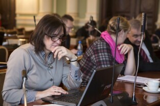 Gdańsk, Nowy Ratusz. Sesja Rady Miasta Gdańska. Nz. Radna Aleksandra Dulkiewicz