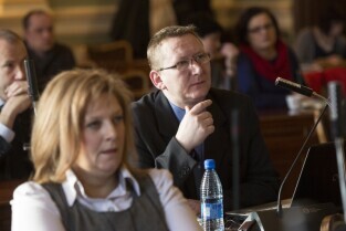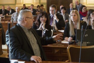 Sesja Rady Miasta Gdańska w Nowym Ratuszu. Nz. radny Piotr Walentynowicz