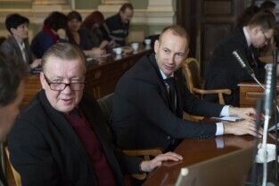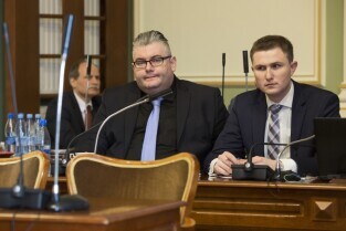 Sesja Rady Miasta Gdańska w Nowym Ratuszu. Nz. Z-ca Prezydenta Gdańska Piotr Grzelak i radny Mirosław Zdanowicz