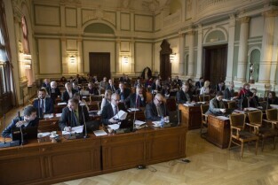 Sesja Rady Miasta Gdańska w Nowym Ratuszu. Nz. po środku radny Grzegorz Strzelczyk