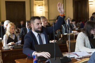 Sesja Rady Miasta Gdańska w Nowym Ratuszu. Nz. radny Piotr Dzik