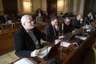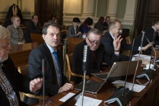 Sesja Rady Miasta Gdańska w Nowym Ratuszu. Nz. radny
