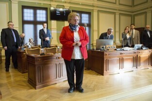 Sesja Rady Miasta Gdańska w Nowym Ratuszu. Nz. nowo zaprzysiężona radna Teresa Wasilewska