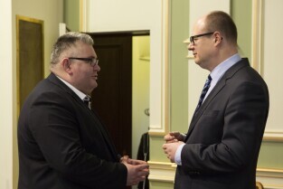 Sesja Rady Miasta Gdańska w Nowym Ratuszu. Nz. Z-ca Prezydenta Gdańska Piotr Kowalczuk i Dyrektor Biura Rady Piotr Spyra