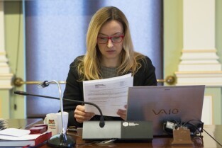 Sesja Rady Miasta Gdańska w Nowym Ratuszu. Nz. radna Magdalena Olek