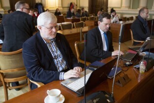 Sesja Rady Miasta Gdańska w Nowym Ratuszu. Nz. radny Piotr Walentynowicz
