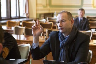 Sesja Rady Miasta Gdańska w Nowym Ratuszu. Nz. radny Piotr Borawski