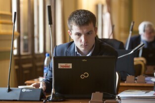 Sesja Rady Miasta Gdańska w Nowym Ratuszu. Nz. radny Wojciech Stybor
