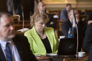 Sesja Rady Miasta Gdańska w Nowym Ratuszu. Nz. radna Emilia Lodzińska