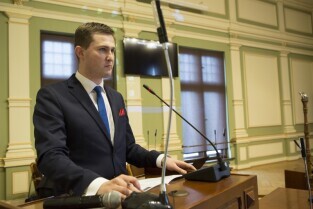 Sesja Rady Miasta Gdańska w Nowym Ratuszu. Nz. radny Grzegorz Strzelczyk