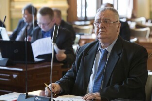 Sesja Rady Miasta Gdańska w Nowym Ratuszu. Nz. radny Kazimierz Koralewski