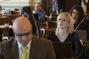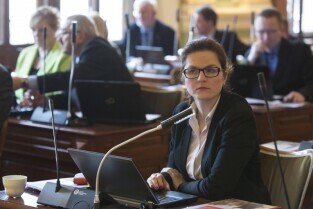 Sesja Rady Miasta Gdańska w Nowym Ratuszu. Nz. radna Aleksandra Dulkiewicz