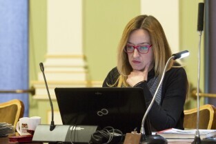 Gdańsk, Nowy Ratusz. Sesja Rady Miasta Gdańska. Nz. Radna Aleksandra Dulkiewicz