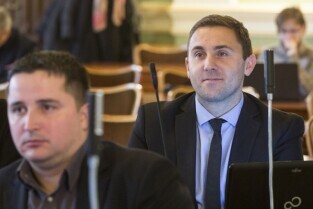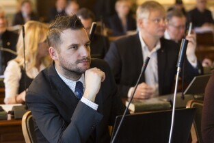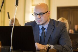 Gdańsk, Nowy Ratusz. Sesja Rady Miasta Gdańska. Nz. Radny Łukasz Hamadyk