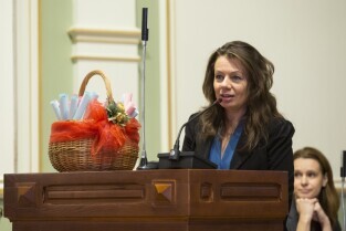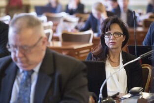 Gdańsk, Nowy Ratusz. Sesja Rady Miasta Gdańska. Nz. Radna Żaneta Geryk