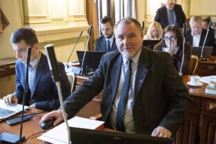 Gdańsk, Nowy Ratusz. Sesja Rady Miasta Gdańska. Nz. Radny Jaromir Falandysz