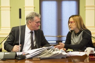 Gdańsk, Nowy Ratusz. Sesja Rady Miasta Gdańska. Nz. Przewodniczący Rady Bogdan Oleszek i Wiceprzewodnicząca Agnieszka Owczarczak