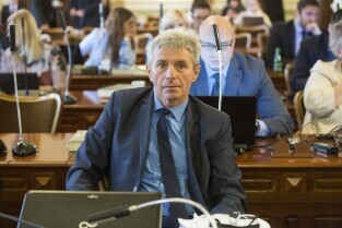 Gdańsk, Nowy Ratusz. Sesja Rady Miasta Gdańska. Nz. Radny Piotr Gierszewski