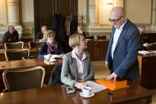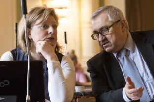 Gdańsk, Nowy Ratusz. Sesja Rady Miasta Gdańska. Nz. Dyrektor Biura Rozwoju Gdańska Edyta Damszel-Turek i Z-ca Prezydenta Gdańska Wiesław Bielawski