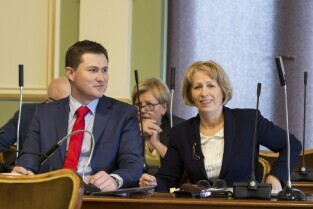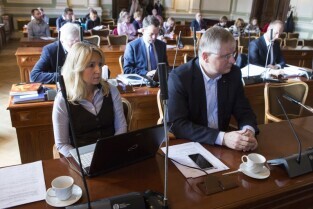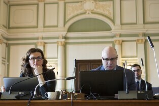 Gdańsk, Nowy Ratusz. Sesja Rady Miasta Gdańska. Nz. radni Anna Wirska i Jacek Teodorczyk