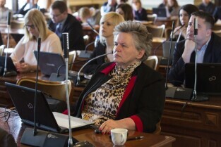 Gdańsk, Nowy Ratusz. Sesja Rady Miasta Gdańska. Nz. radna Teresa Wasilewska