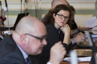 Gdańsk, Nowy Ratusz. Sesja Rady Miasta Gdańska. Nz. radna Aleksandra Dulkiewicz