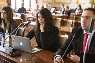 Gdańsk, Nowy Ratusz. Sesja Rady Miasta Gdańska. Nz. od lewej radni: Mariusz Andrzejczak, Beata Wierzba, Emilia Lodzińska