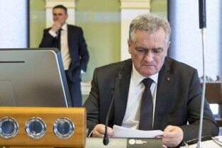 Gdańsk, Nowy Ratusz. Sesja Rady Miasta Gdańska. Nz. radny Adam Nieroda