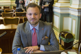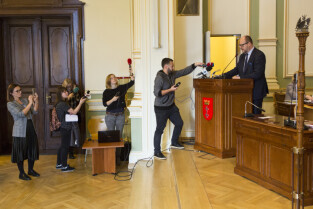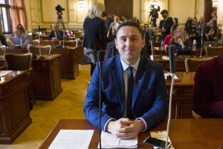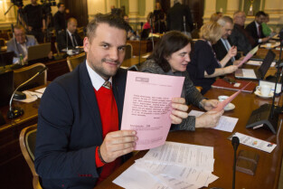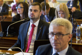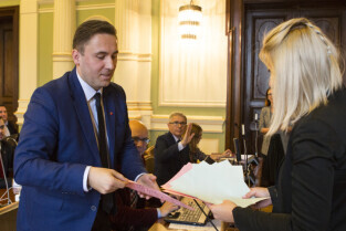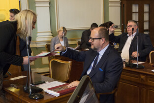 Gdańsk, Nowy Ratusz. XLIV Sesja Rady Miasta Gdańska. Nz. radny Mateusz Skarbek