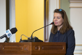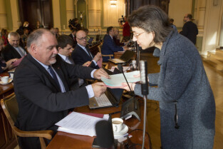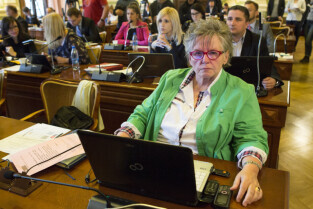Gdańsk, Nowy Ratusz. XLIV Sesja Rady Miasta Gdańska. Nz. radna Emilia Lodzińska