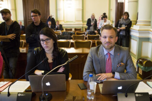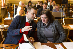 Gdańsk, Nowy Ratusz. XLIV Sesja Rady Miasta Gdańska. Nz. radni Anna Kołakowska i Łukarz Hamadyk